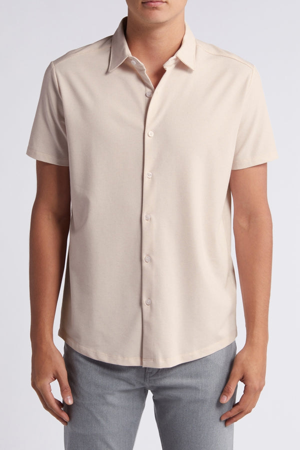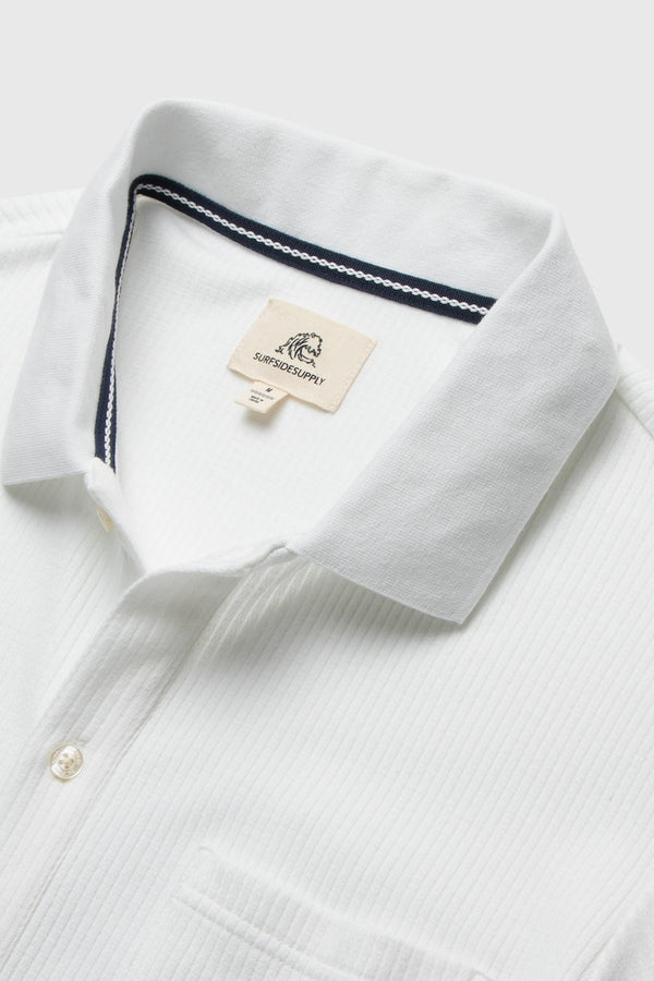 BYLT Latte Ribbed Drop-cut Open V Polo