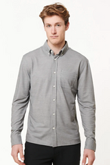 This long sleeve merino wool button-up from Western Rise is designed for the modern man who values both style and functionality. Featuring a sleek grey color, this shirt is odor resistant, moisture-wicking, temperature regulating, wrinkle resistant, and stretchy. It's a versatile piece that can be worn every day, regardless of the weather, occasion, or location. For a business casual look, pair this shirt with tailored trousers and leather loafers. It also works perfectly for a date night when combined with dark jeans and a sleek jacket. Wear the grey Western Rise button-up shirt made with a luxe merino wool-blend fabric with black chinos and chelsea boots for a monochromatic ensemble.