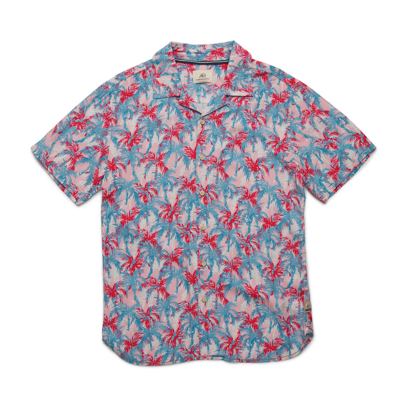 Surfside Supply Bright Pink Tropical Palm Print Camp Collar Short Sleeve Shirt