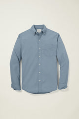 Introducing our classic blue button-down shirt, a perfect blend of style and comfort for the modern man. Crafted from a lightweight fabric, this top features a slim fit and a button-down collar, making it ideal for both casual and smart occasions. The soft cotton material with added stretch ensures flexibility and ease of movement, while the front chest pocket and double button cuff add functional elegance. For a business casual look, pair this shirt with tailored chinos and leather loafers. Alternatively, dress it down with jeans for a relaxed date night ensemble. The Bonobos shirt is such a great piece and will pair well with the light grey pants and your favorite sneakers.