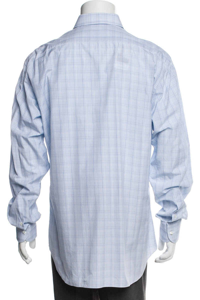 Brioni Blue/White Plaid Print Long Sleeve Dress Shirt