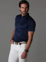 Collars & Co Navy 4-Way Stretch Short Sleeve Button Down Polo