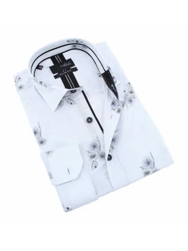 A timeless button up boasting a trendy floral pattern. This pure cotton number provides the ultimate comfort for any season. Its slim fit construction brings a chic, self-assured style. Complete the look with The Ministry of Supply Slate Grey Kinetic Pant, creating a contemporary, understated outfit that's ideal for an evening at a trendy new spot in town.