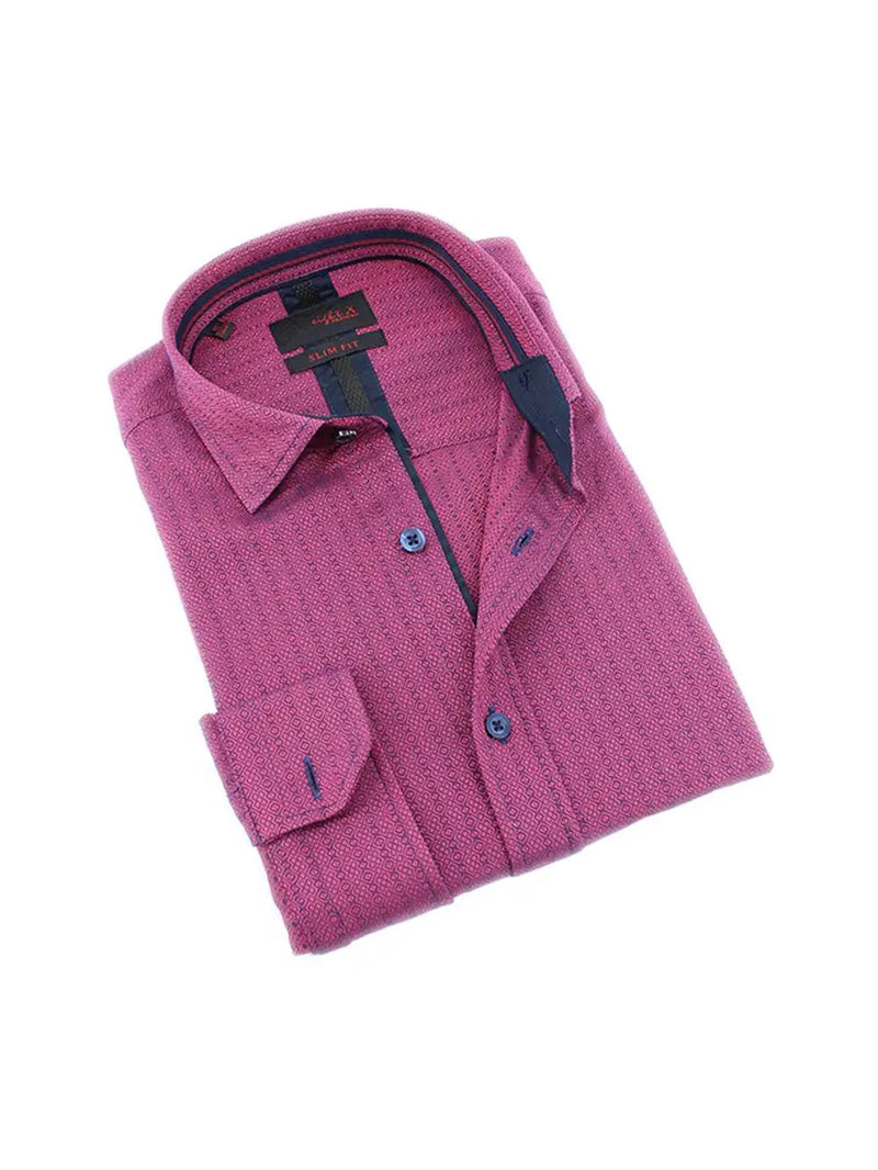 Eight X Red And Black Jacquard Diamond Abstract Print Slim Fit Long Sleeve Button Up Shirt