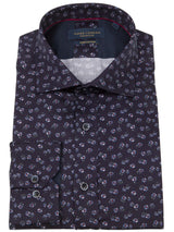 Guide London Navy Micro Floral Print Long Sleeve Button Up Shirt