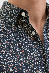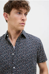 Introducing our classic floral print top, a perfect blend of style and comfort for warm weather occasions. This top features a sophisticated floral pattern on a lightweight fabric, making it ideal for both casual and smart casual settings. The regular fit and button fastening add a touch of elegance, while the twill woven fabric ensures durability and a unique texture. Embrace the preppy and minimal style with this versatile piece, perfect for enhancing your wardrobe. For a stylish date night look, pair this floral top with tailored trousers and loafers. It's also perfect for a vacation or resort getaway, offering a chic yet relaxed vibe. Pair the Jack & Jones microfloral shirt with shorts or pants for a stylish date night look.