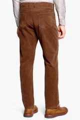 Introducing our classic brown corduroy pants, designed for both style and comfort. These bottoms feature a timeless five-pocket silhouette, perfect for everyday wear. The plush, fine-wale corduroy fabric offers a soft and supple feel, enhanced by a touch of stretch for optimal fit and comfort. Ideal for cold weather, these pants are a versatile addition to any wardrobe, embodying a classic and minimal aesthetic. For a business casual look, pair these corduroy pants with a crisp button-up shirt and leather loafers. They are also perfect for a smart casual outing, making them a great choice for a date night or a relaxed casual wedding. For work, pair the Johnston & Murphy pants with the True Classic shirt and a pair of sneakers.