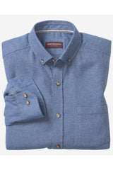 Introducing the Johnston & Murphy Blue Solid Shirt, a perfect blend of classic style and modern comfort. This midweight woven top is designed for year-round wear, featuring a brushed finish for extra softness and a button-down collar for a polished look. The subtle contrast facing inside the collar and cuffs adds a touch of sophistication, making it ideal for both smart casual and everyday casual settings. For a business casual look, pair this shirt with tailored trousers and leather shoes. Alternatively, dress it down with jeans for a relaxed date night ensemble.
