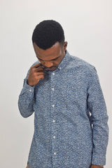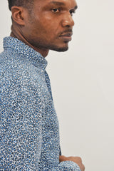 The Kenzo Light Blue Animal Print Long Sleeve Button Up Shirt epitomizes versatile styling with its vivid blue hue enriched by an engaging animal print. Designed with a regular fit and crafted from lightweight woven fabric, this shirt ensures both comfort and breathability, making it suitable for year-round wear. Its collar neckline and button-up feature contribute to a timeless design that aligns well with various smart casual to date night occasions. For a trendy date night outfit, pair the Kenzo Light Blue Animal Print Long Sleeve Button Up Shirt with the Reiss Dark Blue Wash Denim Jeans and sneakers.