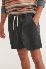 Introducing our classic black corduroy shorts, designed for those who appreciate a blend of comfort and style. These shorts feature a lightweight 12-wale corduroy fabric, offering a subtle texture that adds depth to your outfit. The standard fit and slight stretch ensure ease of movement, making them perfect for warm weather adventures. With a solid black color, these shorts are versatile enough for various occasions, from everyday casual to smart casual settings. For a relaxed vacation look, pair these shorts with a striped sweater and casual sneakers. They're also ideal for a casual wedding or a day at the golf course. The Marine Layer black shorts are a versatile addition to your wardrobe.