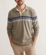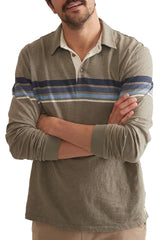 Marine Layer Green/Blue Stripe Vintage Heavy Slub Rugby Polo