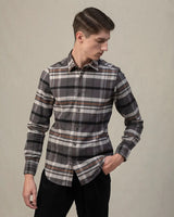 Morgan.M Dark Grey Multi Plaid Long Sleeve Flannel Button Up