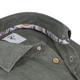 R2 Amsterdam Dark Olive Green Linen Long Sleeve Button Up Shirt