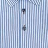 R2 Amsterdam White And Blue Vertical Striped Long Sleeve Button Up Shirt With Contrast Collar And Cuff Detail