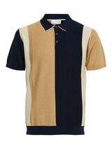 Selected Homme Navy And Beige Colorblock Knit Button Up Short Sleeve Polo