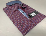 Spazio Burgundy With Blue and White Arrow Print Long Sleeve Button Up Shirt