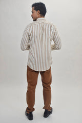 This Suit Sartoria shirt is crafted from lightweight fabric with a retro-inspired horizontally striped design in cream and brown for a timeless look. Cut for a slim fit, it features a classic button-up closure and long sleeves for a smart, professional look. Pair with Suit Sartoria Brown Slim Fit Stretch Chino Pant for a semi-formal ensemble, apt for date night or the office, striking the right balance between sophistication and style.