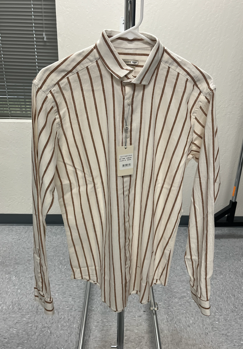 Suit Sartoria Cream And Brown Horizontally Striped Long Sleeve Slim Fit Button Up Shirt