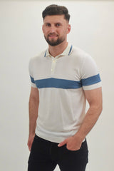 Suit Sartoria White With Light Blue Stripe Button Up Knit Short Sleeve Polo