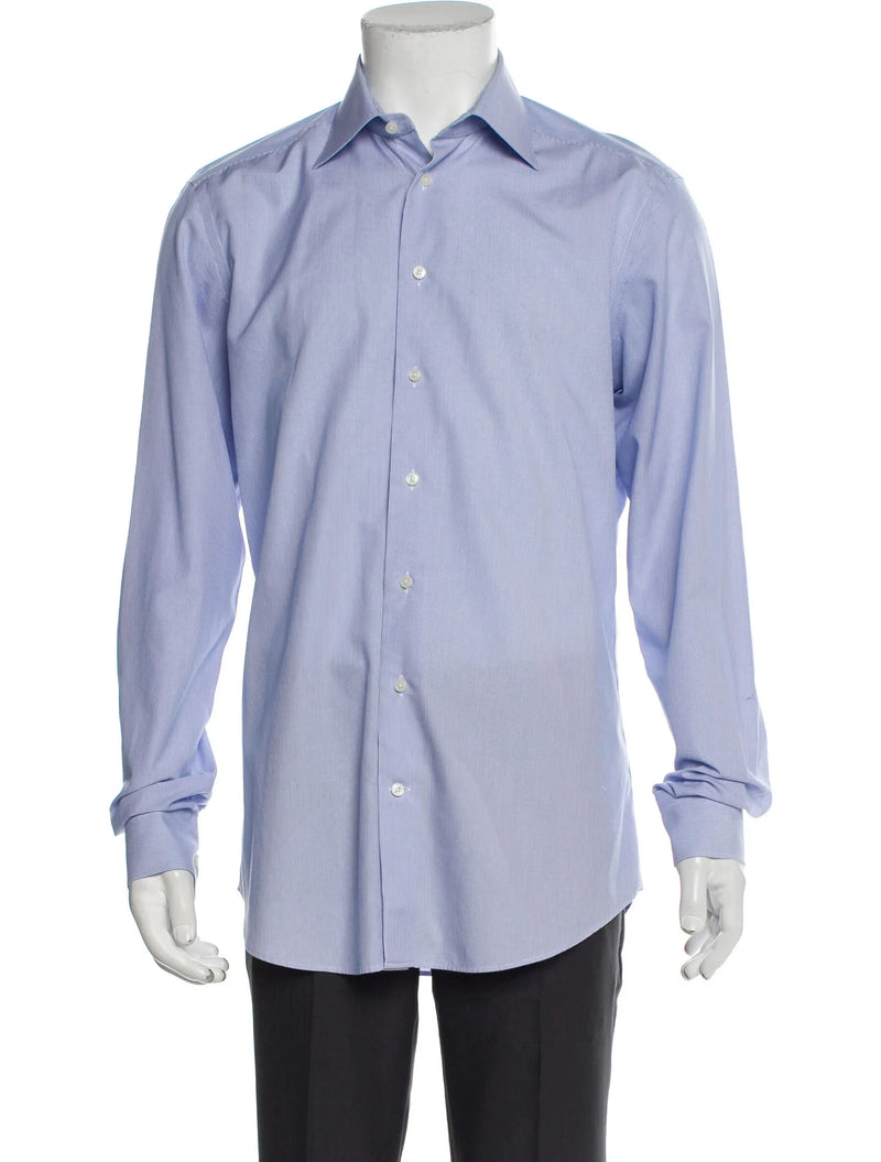 Suitsupply Light Blue Striped Traveller Long Sleeve Button Up