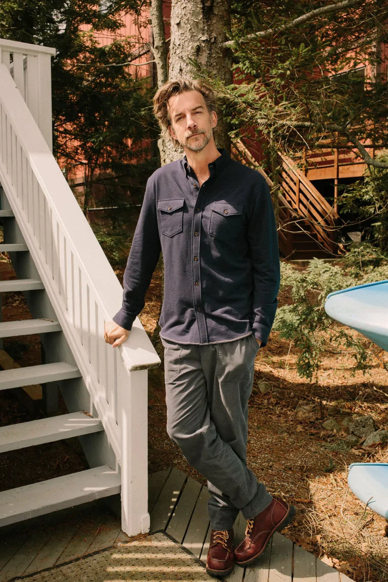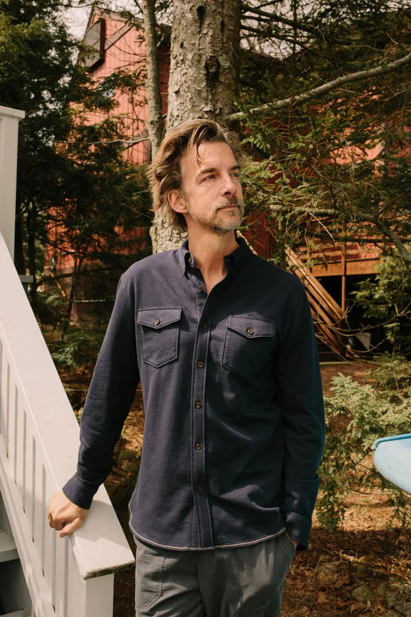 Surfside Supply Navy Knit Long Sleeve Button Up Shirt With Two Front Chest Pockets