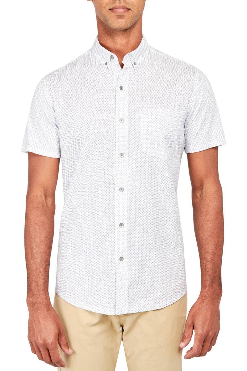 Show off your unique style with this W.R.K. short sleeve shirt! This shirt features a reworked grey diamond print on premium cotton fabric, with a classic short sleeve button-up design. Perfect for special occasions, this shirt is sure to make a statement. Pair with the timeless Olivers Khaki Tan Passage Pant to create a classic ensemble with a stylish twist, perfect for a day of golf.