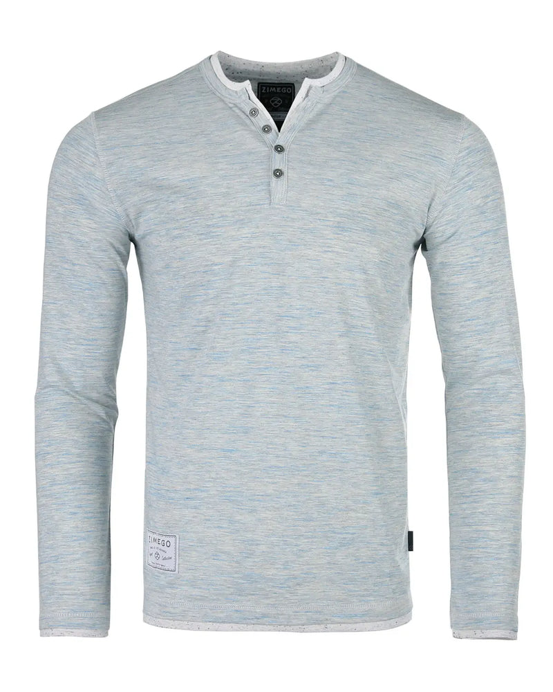 Zimego Light Blue Layered Heathered Long Sleeve Henley